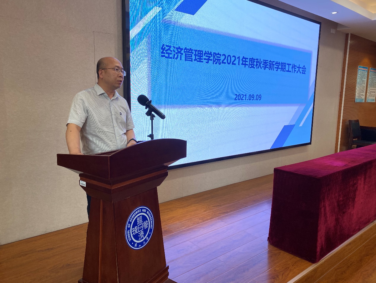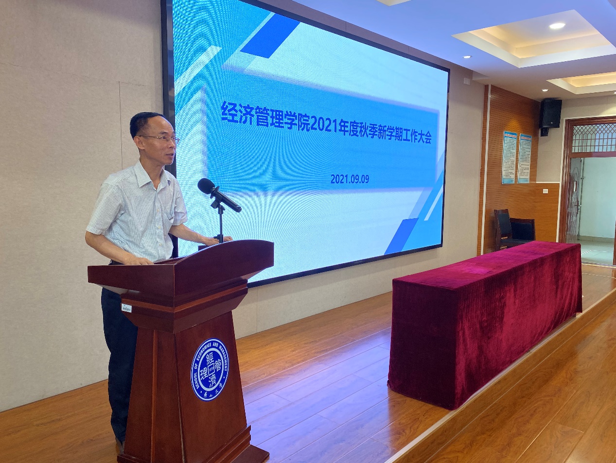 以经管楼A218报告厅为主会场召开了2021年秋季新学期工作视频会议,学院领导班子成员、全院教职员工参加了会议。会议由党委书记翁钢民主持。