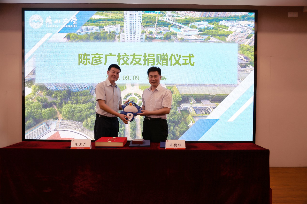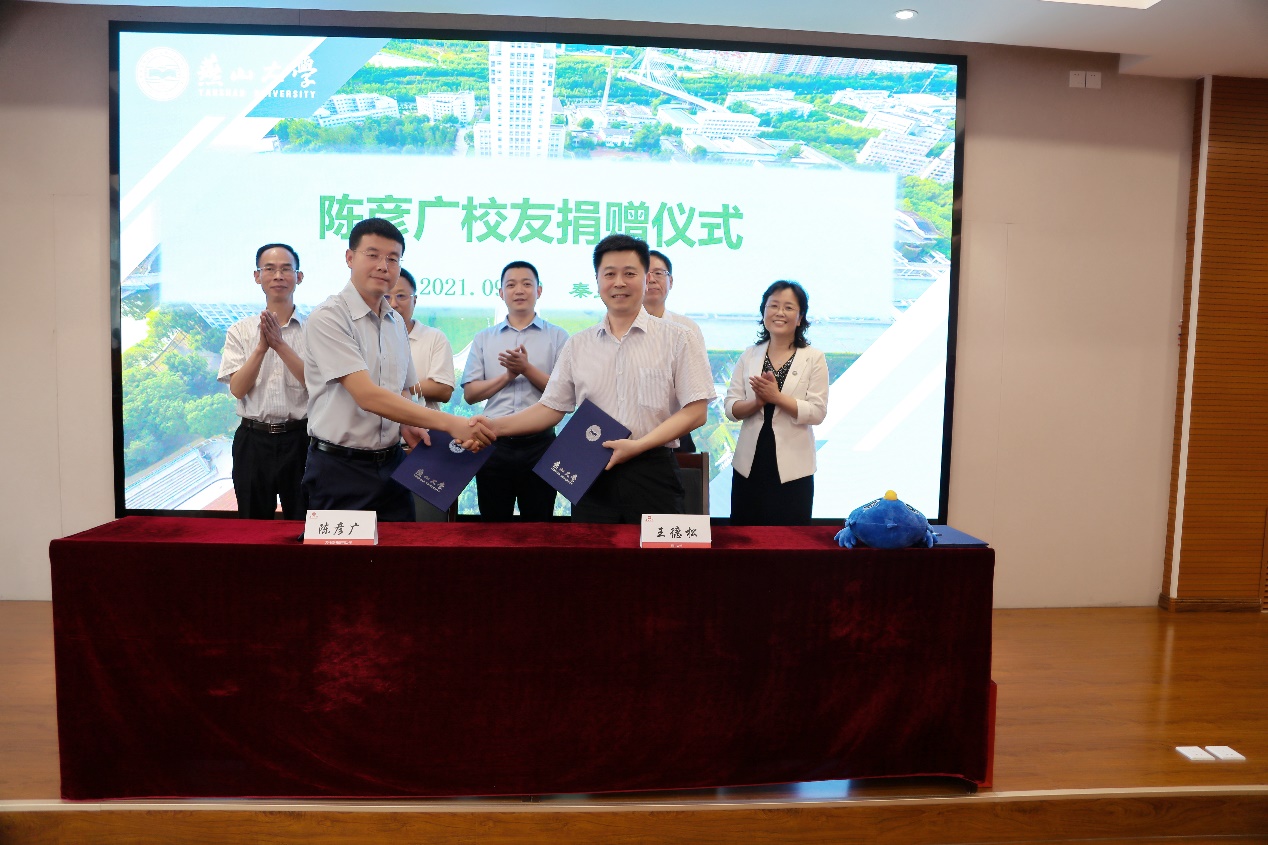 副校长王德松与陈彦广校友共同签署捐赠协议