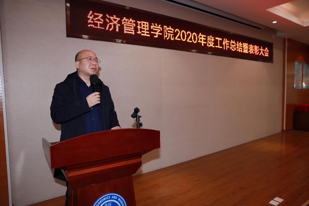 党委书记翁钢民主持学院工作总结暨表彰大会。学院领导结合分管工作对2020年各项工作进行了回顾总结。2020年是学院站在新起点持续提质增速发展的一年,这一年学院科研成果再创新高,疫情期间线上教学稳步推进,人才引进、国际化办学、双创教育、工会工作、学生党建和学风建设都取得新的突破和更大的成绩。