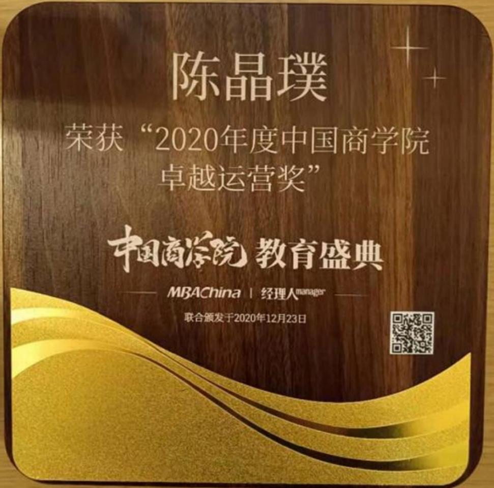 陈晶璞副院长荣获“2020年度中国商学院卓越运营奖”