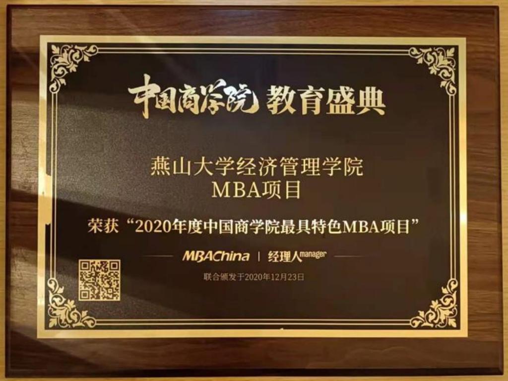 MBA项目荣获“2020年度中国商学院特色MBA项目奖”