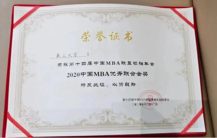 MBA联合会获“中国MBA优秀联合会奖”。