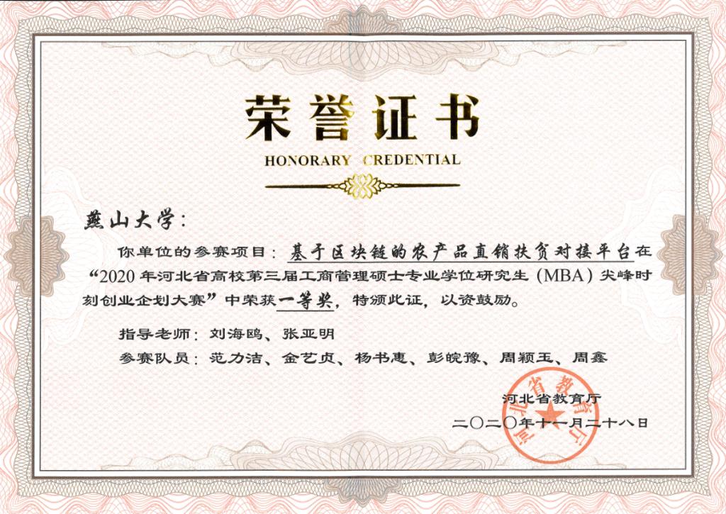 《基于区块链的农产品直销扶贫对接平台》荣获一等奖
