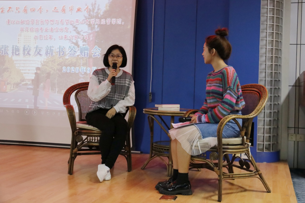 95级旅游管理专业校友张艳分别在东区图书馆报告厅与西校区心怡广场举办新书签赠会,并与现场师生分享在校期间的生活趣事、毕业以后的工作历程和自己走上创作之路的经历。
