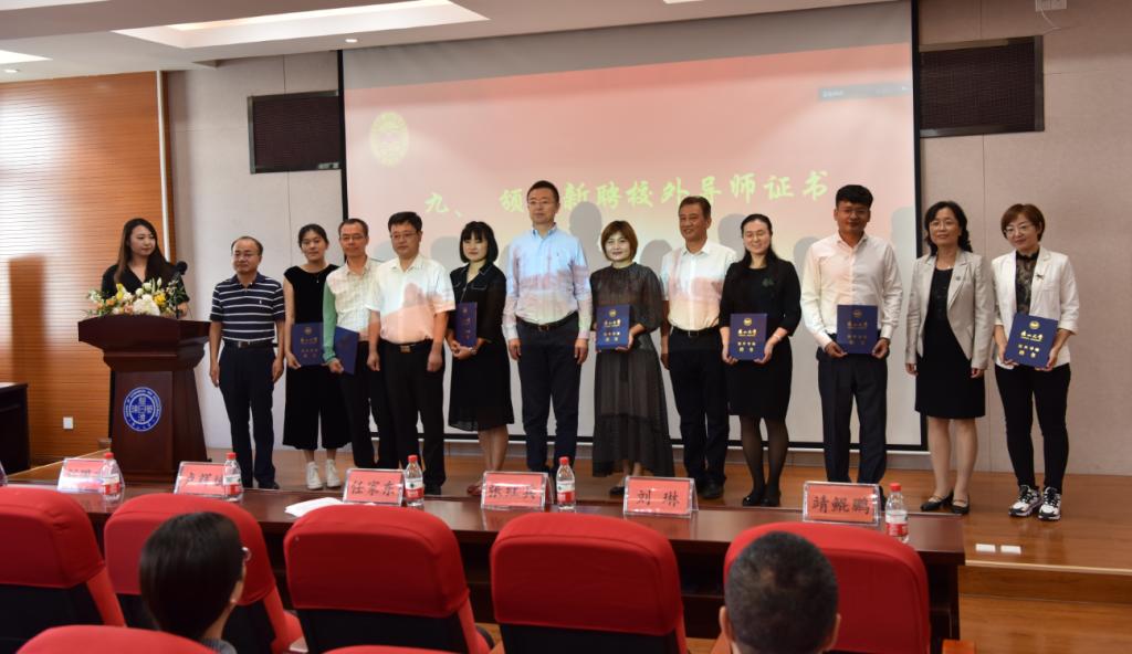 MBA校外导师代表丁丽娜、刘博明、潘娟娟、刘妍、曲磊、李强、孟祥伟颁发聘书。