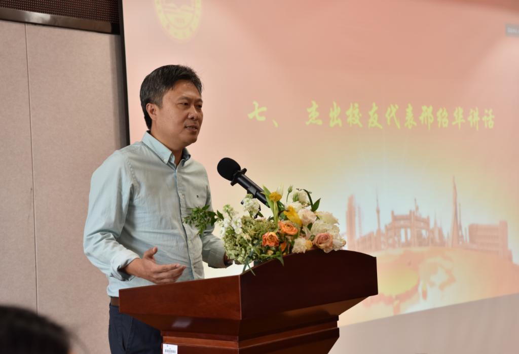 杰出MBA校友代表、唐山曹妃甸工业区联合国际船舶代理有限公司总经理邢绍华分享了他的个人成长和对MBA学习的体验,并提出了对学弟学妹们的期待和学习建议。