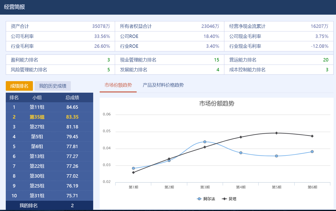 学生积极报名参加,共有2018和2017级172名同学参加比赛。本次比赛通过高校企业价值创造实战竞赛平台进行线上比赛,经过激烈的对抗,共有4组同学获得一等奖,9组同学获得二等奖,13组同学获得三等奖,17组同学获得参与奖。通过本次比赛,培养了同学们的商业头脑、全局意识,提升了知识整合能力、沟通合作能力及领导力。