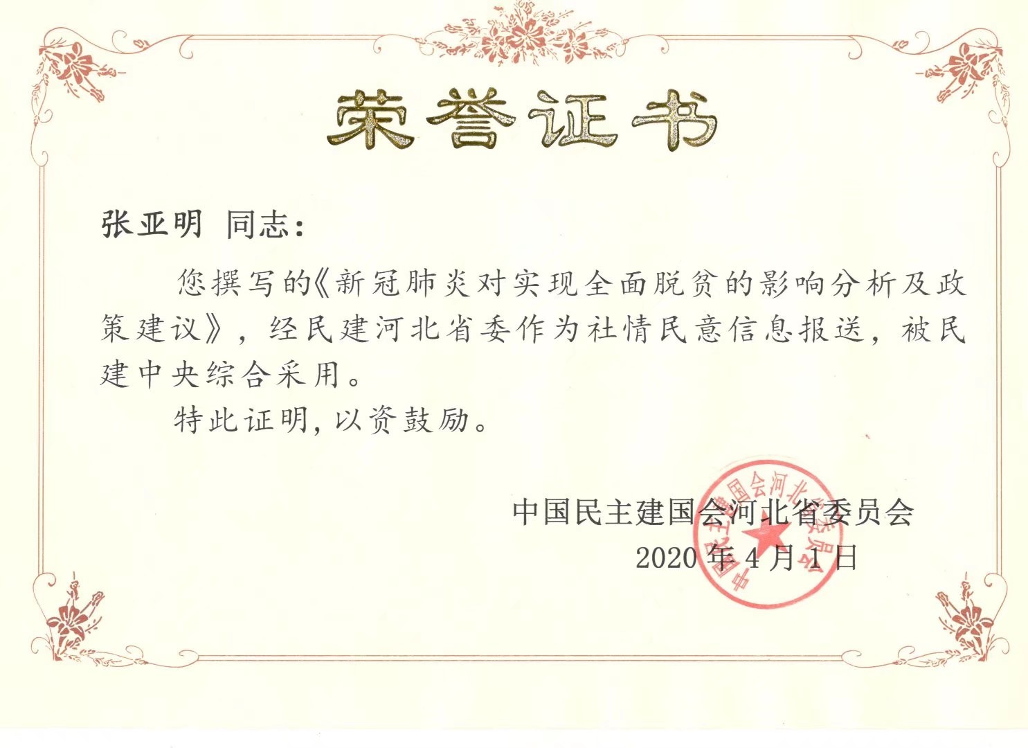 教师张亚明教授、刘海鸥副教授撰写的智库报告《新冠肺炎对实现全面脱贫的影响分析及政策建议》再次被民建中央采用,这是张亚明教授科研团队第五篇被民建中央采用的智库报告,实现了建言资政新的突破。