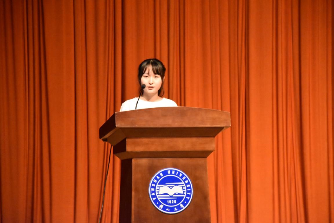 学生科科长夏亮亮老师主持。典礼伊始,与会人员全体起立,奏唱中华人民共和国国歌。学生代表发言环节,16级在校生代表赵丽茹同学总结自己三年来的学习经验,向新生们提出了几点建议:调整心态,一切归零。进入大学,从零出发,迎接新的开始,新的大学生活。第二,自律自勉,主动学习。大学生活是个主动学习的过程,少了以前耳提面命的学习生活,现在是自主学习,主动博弈的过程。第三,做好规划,积极参与。规划自己的学习生活,积极参与课外活动,锻炼自己的能力。19级新生代表闫晗同学提出了培养良好学习习惯、掌握正确学习方法、锻炼自身综合能力的建议,为同级新生指明学习方向。夏亮亮老师代表学院向恰逢今天生日的几位新生表达了美好祝愿,也向全体新生表达了美好祝福。李春玲院长在致辞中围绕“厚德、博学、求是”的校训展开,向新生提出了几点希望,希望新生们积累经验、升级装备、提高等级,厚德笃行、博学广识、求是探理,度过一个充实快乐的学习生活。新生辅导员杜蓓、李源、胡冰煜带领全体新生进行宣誓。“恪守燕大校训,秉承燕大精神;传承奋斗精神,永续报国情怀”,希望同学们可以铭记誓言,砥砺前行。开学典礼振奋人心,催人进步。经过开学典礼的洗礼,更坚定了广大燕大学子,经管学子勤奋学习、努力成才的信念。