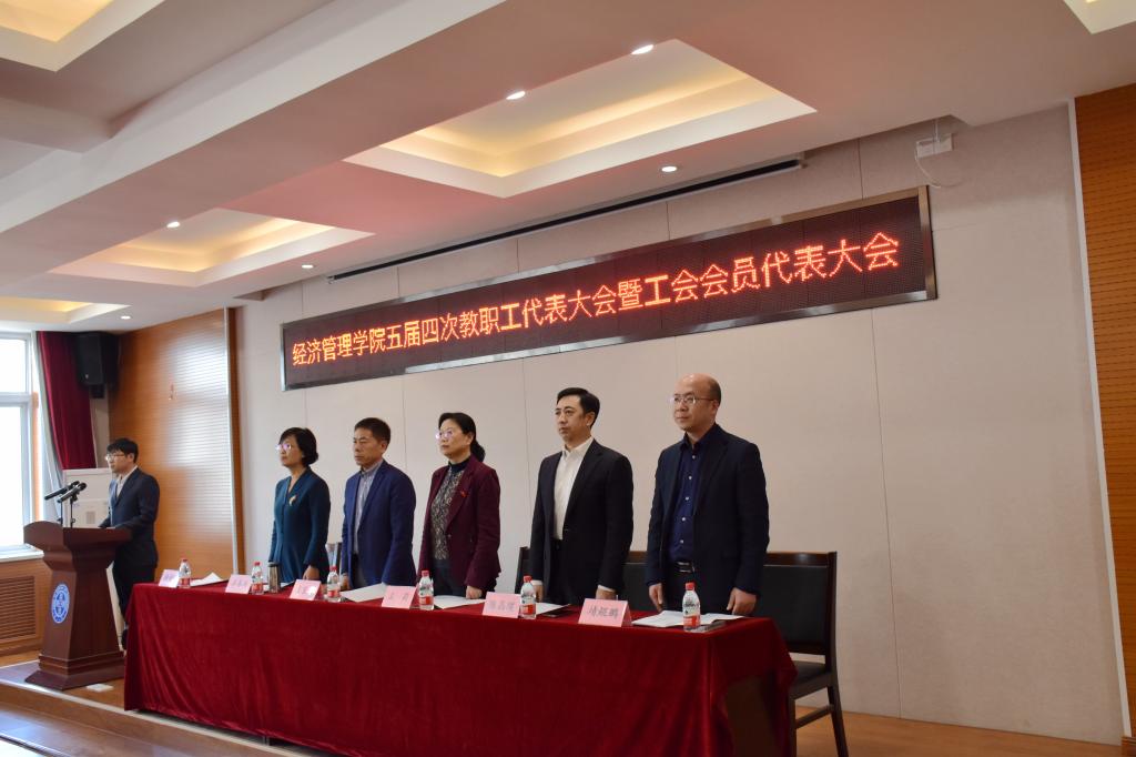 五届四次教职工暨工会会员代表大会在经管楼218报告厅隆重召开。校党委常委王宝诚同志出席大会,学院领导班子在主席团就坐,全院58名代表参加了此次会议。会议由党委副书记、分工会主席薛传佳同志主持。