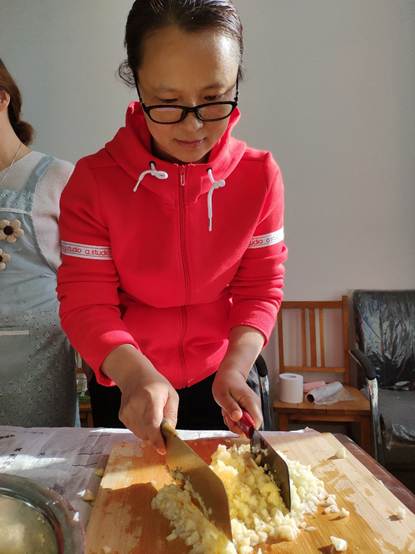 活动之前,分工会精心准备了苹果、梨、糖、葱、姜、糖稀、鱼露等辅料;在刘志坚老师详细讲解腌制辣白菜的过程及其注意事项后,这个“课堂”瞬间“翻转”:“麻烦递给给我一个苹果”、“给我来些糖”、“辣椒面还有没有”、“尝尝我这个味道,太好吃了”。这是一个学习的过程,更是一个彼此交流的过程。近90分钟的活动在老师们的欢声笑语中结束,大家看着自己的作品,脸上洋溢着成功的喜悦与收获的快乐。