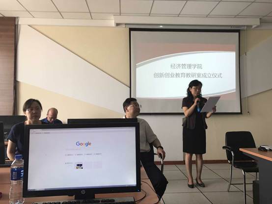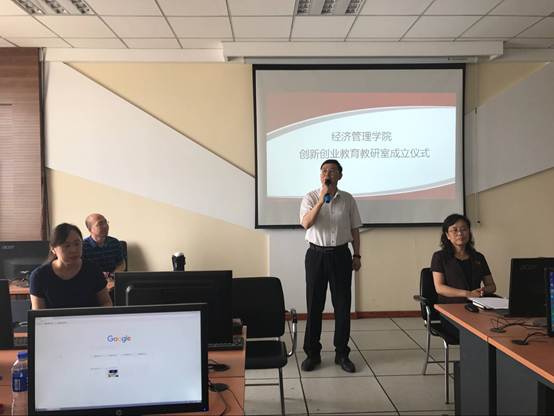 的创新创业教育进入崭新的阶段。第二,希望教研室的成立能够更好的承接全校创新创业教育任务,形成教学、实训、科研、实践为一体的高素质团队。第三,希望教研室能够以教学为前提,科研并重。最后提出要以“高站位、国际视野”,通过5年使成人网