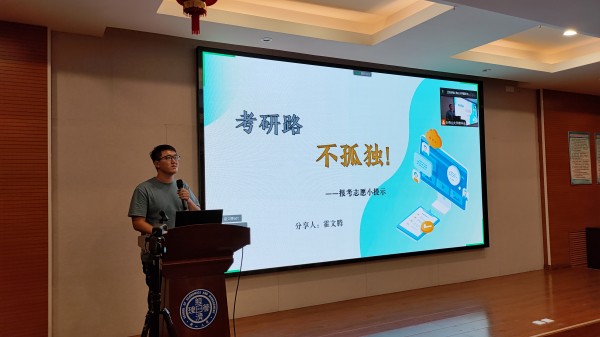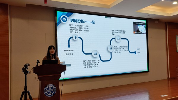 2022级工业工程与管理研究生霍文腾、会计学研究生李静怡、物流工程与管理研究生冯华跃和应用经济学研究生李紫妍分享考研及调剂的心得和经验。霍文腾主要从考研院校选择的重要性出发,分享了解考研院校信息的途径以及在选择考研院校时需要关注的事项,提出从自己的实力、准备情况和历年考试分数出发选择院校的层次。李静怡介绍了9-12月份复习时间的分配及各学科的复习重点,着重分享了自己考研初试410分的复习时间规划,强调考研备考过程要遵循最适合自己的时间规划,不盲目与他人比较,从而带来不必要的焦虑情绪。冯华跃结合自身专业,详细讲解了199管理类联考的备考经验和心态的调整,谈到复习过程中心态要保持乐观,不要轻易放弃。他告诫大家完成比完美更重要,考研路上既然选择远方,便只顾风雨兼程。李紫妍结合自身调剂成功的经验,为大家梳理了考研流程的重要时间点以及填报调剂系统的详细流程,强调调剂过程中信息的搜集和调剂的时间很重要,希望大家坚持下来、顺利上岸。