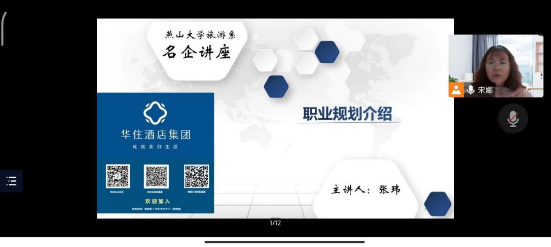 2022年11月17日,经管学院旅游系邀请华住酒店集团人力资源部校企合作负责人张玮先生为旅游系学子举行职业发展规划讲座。本次讲座由系主任宋娜老师主持,参会人员有华住酒店集团华北区域校企合作负责人刘浩先生,以及成人网