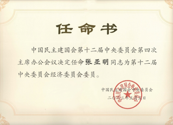 张亚明教授被任命为民建中央经济委员会委员,是成人网
