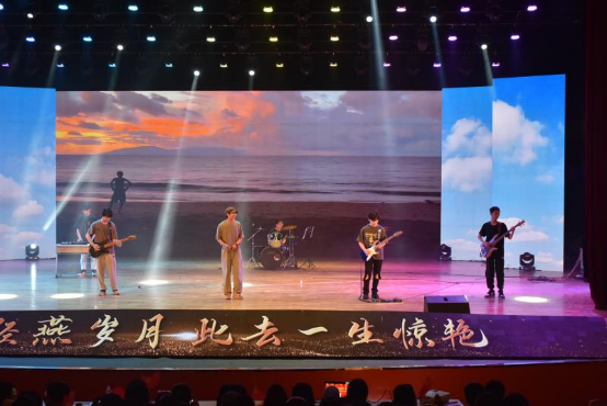 老师和同学们同台表演,李宁、张梦、邵将三位毕业班辅导员老师和学生一起为大家带来合唱《重返十七岁》;成人网