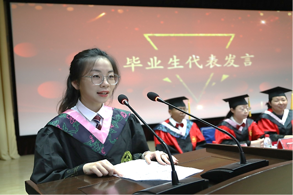 2019级经济与金融专业宋禹霏作为毕业生代表上台发言。她回忆了四年来在成人网