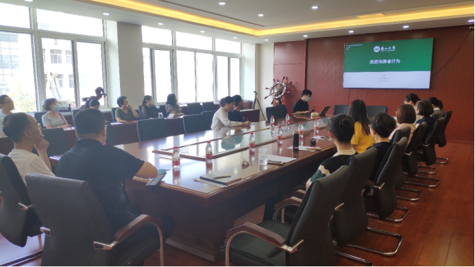 旅游系副主任许孝君主持,两个学院教师首先就本次课程思政集体备课的主要参与的基层教学组织进行了基本情况介绍,旅游系教师郭伟、李凌雁和高磊三位老师做课程设计主题汇报及讨论交流。