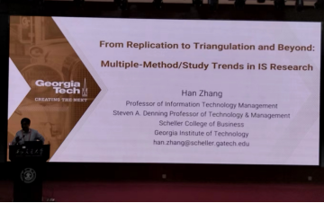 ICEC国际会议开幕式上,ICEC创会主席、韩国汉阳大学副校长Gyoo Gun Lim教授,ICEC荣誉主席、教育部电商教指委副主任、西安交通大学李琪教授,西安交通大学社科处处长梅红等致辞。本届ICEC2023会议主要聚焦“电子商务的可持续创新发展”主题,通过4个主题报告,分设社会化电子商务、消费者行为、AI与人类:合作与竞争、社会网络与社交媒体、数字创新、中国数字经济自由贸易试验区和服务数字化转型等多个专题分会场。佐治亚理工学院Han Zhang教授、杜兰大学Xianjun Geng教授、新墨西哥大学Robert Xin Luo教授、西安未来人工智能计算中心COO张云鹏四位国内外专家学者带来精彩主旨演讲。