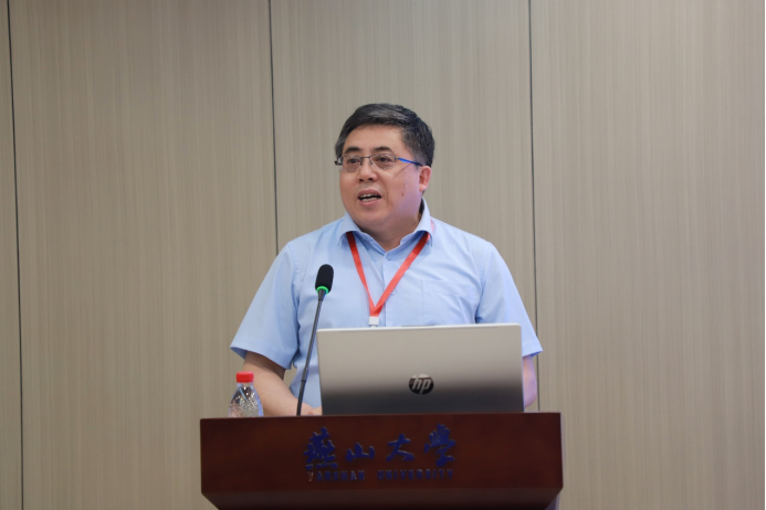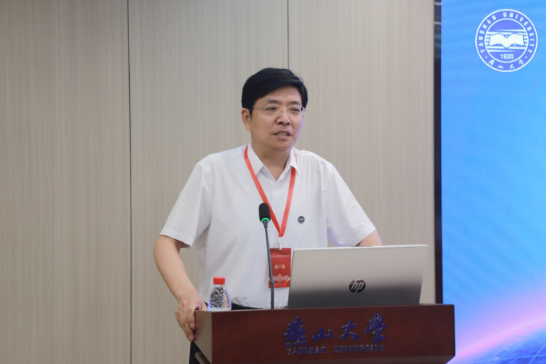 智库建设进展等三个方面,作了《新时代中国特色高校新型智库建设的探索与实践》的报告。