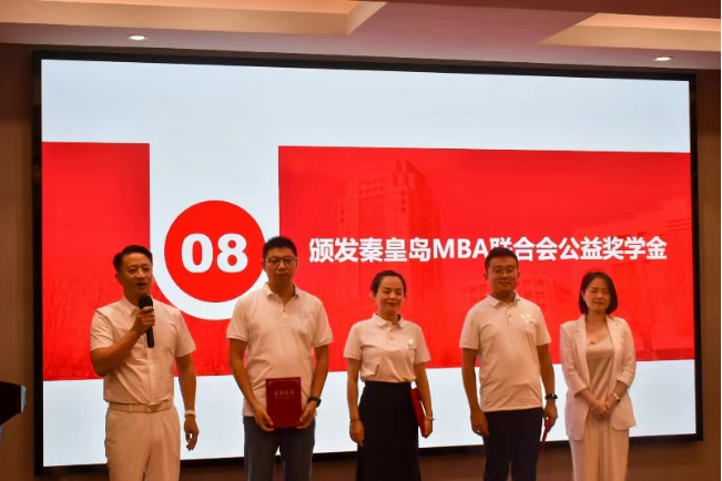 秦皇岛MBA联合会主席李光为获得首批秦皇岛MBA联合会公益奖学金的同学颁奖。