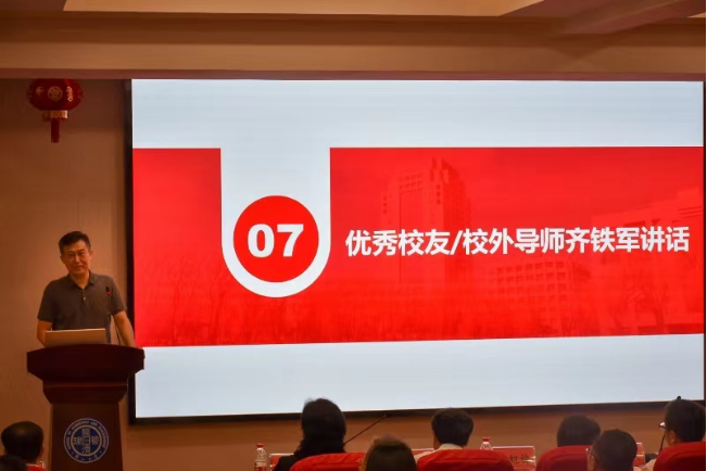 优秀MBA校友代表、校外导师、秦皇岛汇达丰科技有限公司总经理齐铁军分享了他的个人成长和对MBA学习的体验,并提出了对学弟学妹们的期待和学习建议。