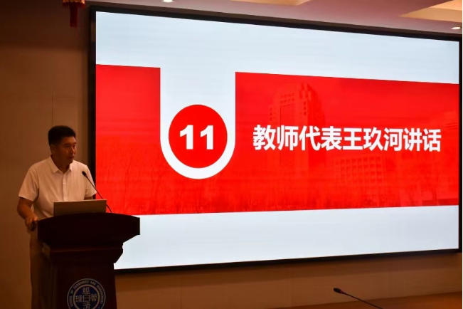 MBA教师团队代表王玖河教授寄语广大新同学要掌握新营商环境下的商业生态规律,领悟行业标杆商业经典的攻玉之道,谙熟组织管理创新融合的实践法则,不断提升自己的国际视野、社会责任、家国情怀和专业精神,实现自身卓越蜕变。
