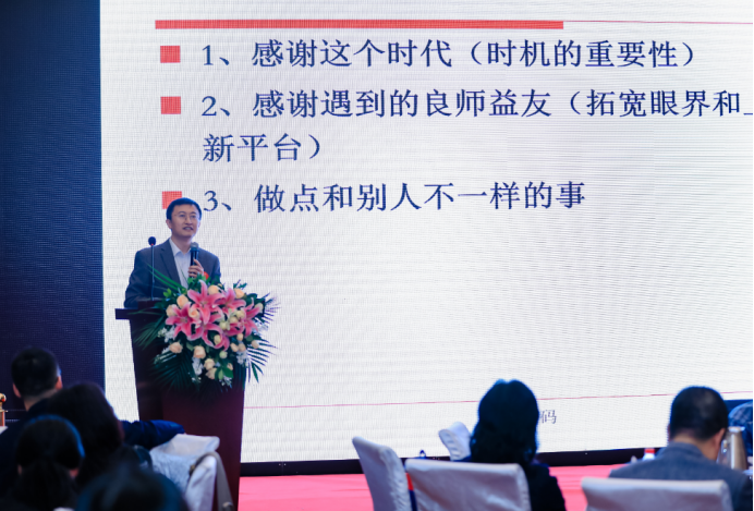 大会筹备组组长、1994级管理工程专业校友、华检医疗控股集团(HK:01931)销售总监孙锴向与会嘉宾汇报了校友联谊会筹备情况。他以“入经管校友会,筑爱的生态圈”为主题,深切阐释了经管学院北京校友会筹备的初衷及未来发展展望。