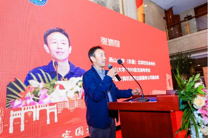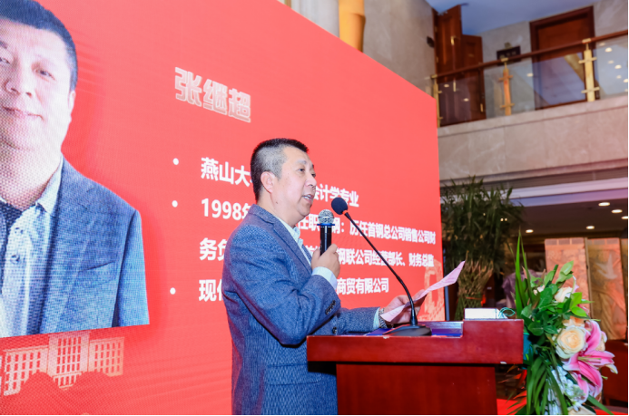(东重)经管学院北京校友会会长、1994级会计学专业校友、北京新成钢联商贸有限公司联合创始人张继超讲话。他首先对与会领导嘉宾、各届校友的到来表示衷心感谢和热烈欢迎,表示经管学院北京校友会成立只是迈出第一步,未来将努力把校友工作做好、做实。他时刻欢迎各地校友交流与往来,与经管北京校友会等各兄弟院校校友会共同进步。最后,他提出把“有温度、有情义”作为经管北京校友会工作的核心理想,并再次表达了对母校、经管学院及与会人员的祝福。