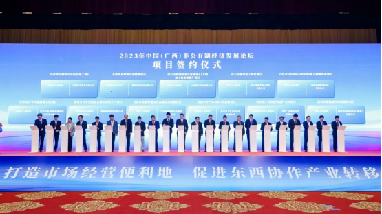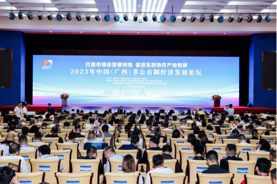 11月3日,由民建中央、工业和信息化部、广西壮族自治区人民政府共同主办,以“打造市场经营便利地促进东西协作产业转移”为主题的2023年中国(广西)非公有制经济发展论坛在广西南宁举行。民建中央主席郝明金出席论坛并致辞。民建中央常务副主席秦博勇作主旨演讲。广西壮族自治区党委书记、人大常委会主任刘宁,工业和信息化部总工程师赵志国分别致辞。广西壮族自治区政协主席孙大伟出席论坛。广西壮族自治区党委常委、统战部部长王心富,民建中央副主席李世杰分别主持论坛开幕式和主旨演讲。民建中央副主席沈金强、孙菊生、洪慧民出席论坛。