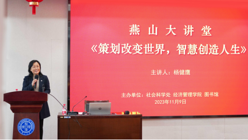 11月9日下午,“燕山大讲堂”活动在经管楼A218举行,本次活动邀请到中国策划行业领军人物、规划专家,中国智慧工程研究会策划专业委员会副主席,中国智慧工程研究会优秀和杰出人才发展委员会副主席,国家智库专家杨健鹰教授为成人网