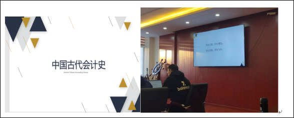 接着,会计系林春雷老师介绍了《中级财务》课程中以案例形式进行的课程思政的开展情况。以中国会计古代史发展,引出“学史明理、学史增信、学史崇德、学史力行”。以中信戴卡股份有限公司的案例引导学生正确理解“存货”。以中国化工并购先正达的案例讲解长期股权投资的相关概念,生动的说明我国综合国力快速提升,使学生们既学会了长期股权投资的理论知识,同时增强了爱国主义精神。以X公司财务部内部控制访谈案例,让学生明白作为一个准会计人员应具备的职业道德素养。