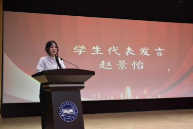 20级会计学3班赵景怡作为学生代表发言。她以自己的切身经历从独立、生活、焦虑、人际关系等方面进行了细致的交流分享,她鼓励同学们山再高,往上攀,总能登顶;路再远,走下去,定能到达。坚定自己前行的目标和脚下的步伐,时光会见证一路的成长与收获,稳步向前,遇事不急,绵绵用力,久久为功。