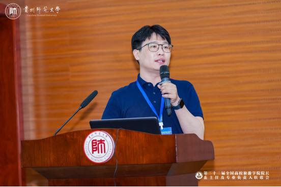 张绍东代表贵州师范大学向与会嘉宾表示欢迎和感谢,指出,落实习近平总书记对旅游工作的重要指示精神,加快旅游强国建设,推动旅游业高质量发展,人才优先发展是重中之重。