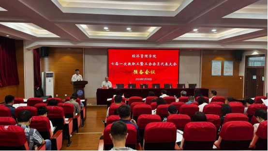 七届一次教职工代表大会暨七届一次工会会员代表大会在经管楼A218开幕。来自学院不同工作岗位的48名代表参加会议。