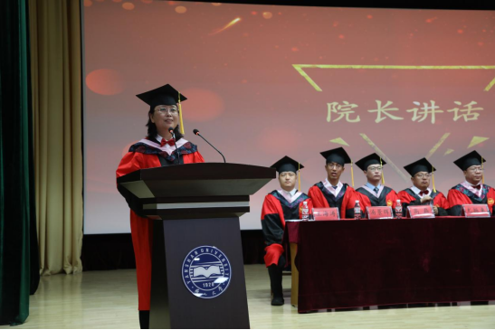 李春玲代表学院致辞,为2024届全体毕业生上好大学的“最后一堂课”。她首先向全体毕业生表示热烈的祝贺,并对他们在燕大学习期间的成长和成就表示由衷的骄傲。李春玲回顾了毕业生们在燕大的学习和生活点滴,嘱咐毕业生们要传承好母校赋予的奋斗基因、工匠精神、卓越品质、家国情怀,要在国家召唤、民族需要时担当起重任。她希望,未来前行的路上,毕业生们要以青春的奋斗、青春的力量在充满无限希望的新时代去创造属于自己的精彩人生,要将青春融入中国梦,激扬青春梦,脚踏实地,以梦为马,不负韶华,争当新时代的追梦人。祝愿毕业生们永远保持心中的热忱与坚持,勇于面对困难和挑战,以青春之名,赴时代之约。