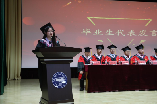 2020级会计学专业赵景怡同学作为毕业生代表发言。她深情回顾了四年的大学生活,表达了对母校、学院、师长以及亲友的感激之情,并代表全体毕业生向母校和师长们送上诚挚祝福。