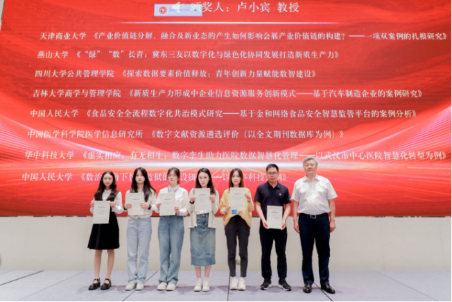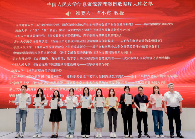 中国人民大学信息资源管理学院学术委员会主任卢小宾教授对入选首届全国信息资源管理案例发展论坛的8篇“优秀案例”作者进行了颁奖。刘海鸥教授撰写的《“绿”“数”长青:冀东三友以数字化与绿色化协同发展打造新质生产力》经过专家评委层层筛选被评为“优秀案例”;《国网冀北电力:数智创新赋能配网数字化蝶变转型》、《“绿”“数”长青:冀东三友以数字化与绿色化协同发展打造新质生产力》两篇案例入选中国人民大学信息资源管理案例数据库。