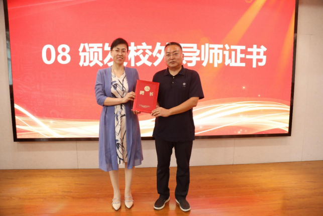 河北省政协委员、原共青团衡水市委书记、现衡水市档案馆馆长、一级调研员刘景秀作为MBA校友代表,结合自己的学习生涯和工作经历,提醒全体同学认真对待学习,积极参与校内外活动,传承奋斗基因,续写母校百年风华。研究生院院长赵庆新为刘景秀颁发了MBA校外导师聘书。