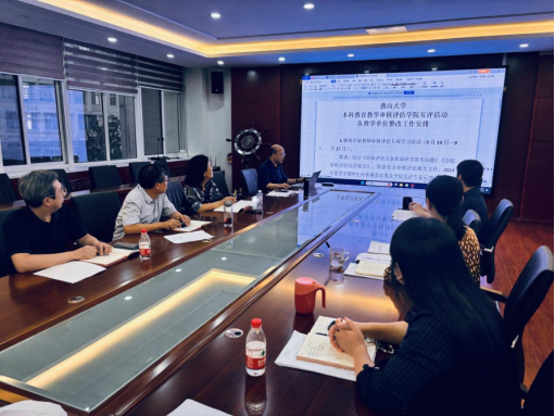 于9月19日下午6点30分在西五A215会议室召开本科教育教学审核评估工作整改推进会,学院领导班子成员参加了本次会议,会议由副院长靖鲲鹏主持。
