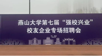 燕⼭⼤学第七届“强校兴业”校友企业专场招聘会于3⽉1⽇ 9:30-12:00在燕⼭⼤学东校区第⼀体育场举⾏。此次招聘会吸引了来⾃全国15个省(⾃治区、直辖市)41个地市的180家重点⽤⼈单位。它们跨越⼭海,⻬聚燕⼤,为燕⼤的毕业⽣们带来了丰富多样的就业选择,让同学们⾜不出校,就能与全国各地的优质企业⾯对⾯交流。