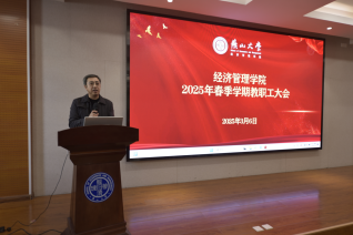 在经管楼A218报告厅召开2025年春季学期全体教职工大会,学院领导班子成员、全院教职工参加了会议。会议由学院正处级专职辅导员杨小丽主持。