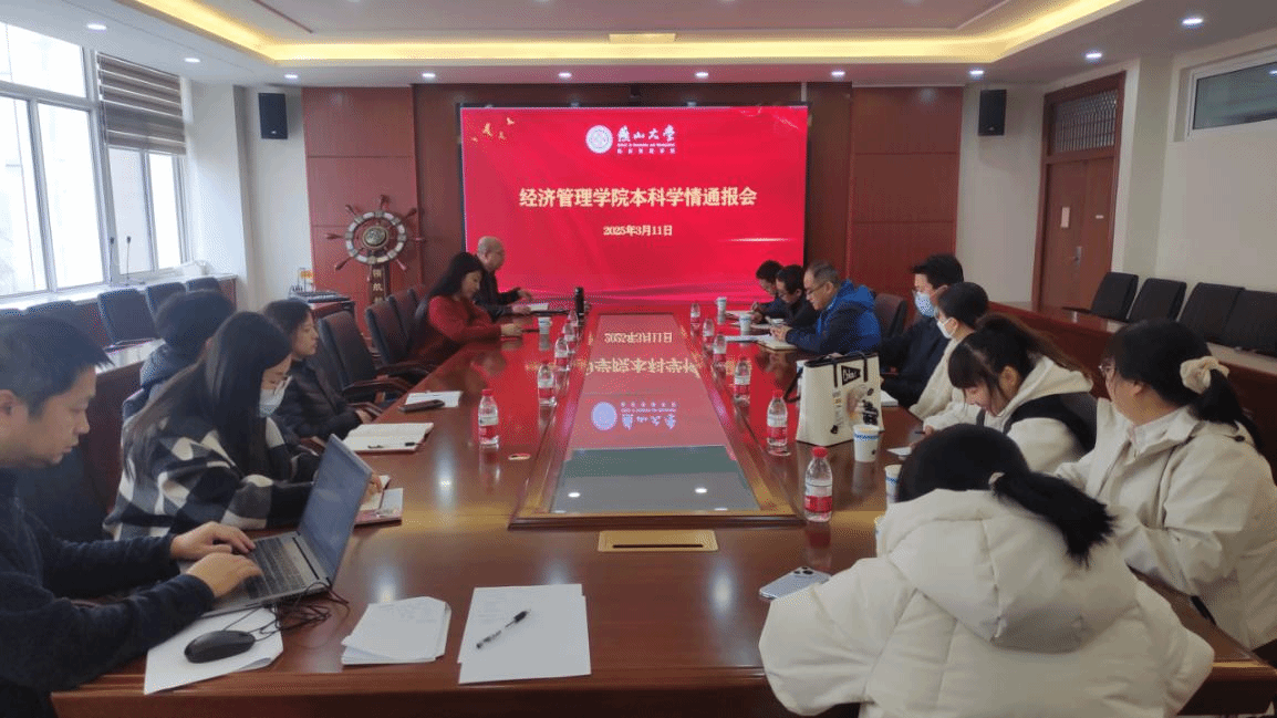 于3月11日下午3点在经管学院A215会议室召开本科学情通报会。副处级辅导员张薇老师、各系副主任、毕业班辅导员老师、双创基地负责人、综合办公室相关人员参加了会议。会议由副院长靖鲲鹏主持。