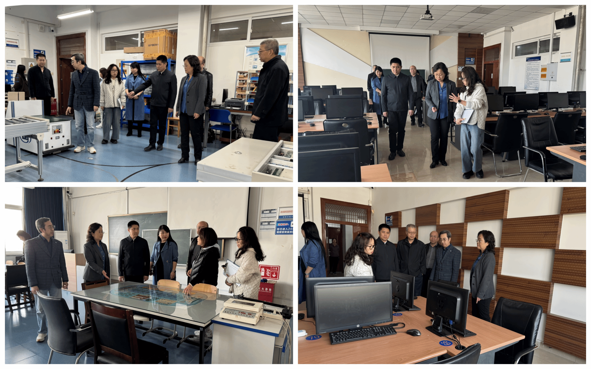 随后,检查小组前往综合实训中心、ERP沙盘模拟实验室等地,对实验设备、用电管理等方面展开检查。要求实验室负责人严格落实安全管理制度,规范操作流程,及时排查和消除潜在的安全隐患。