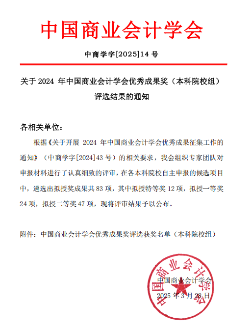 近日,中国商业会计学会公布2024年优秀成果奖评选结果,成人网
