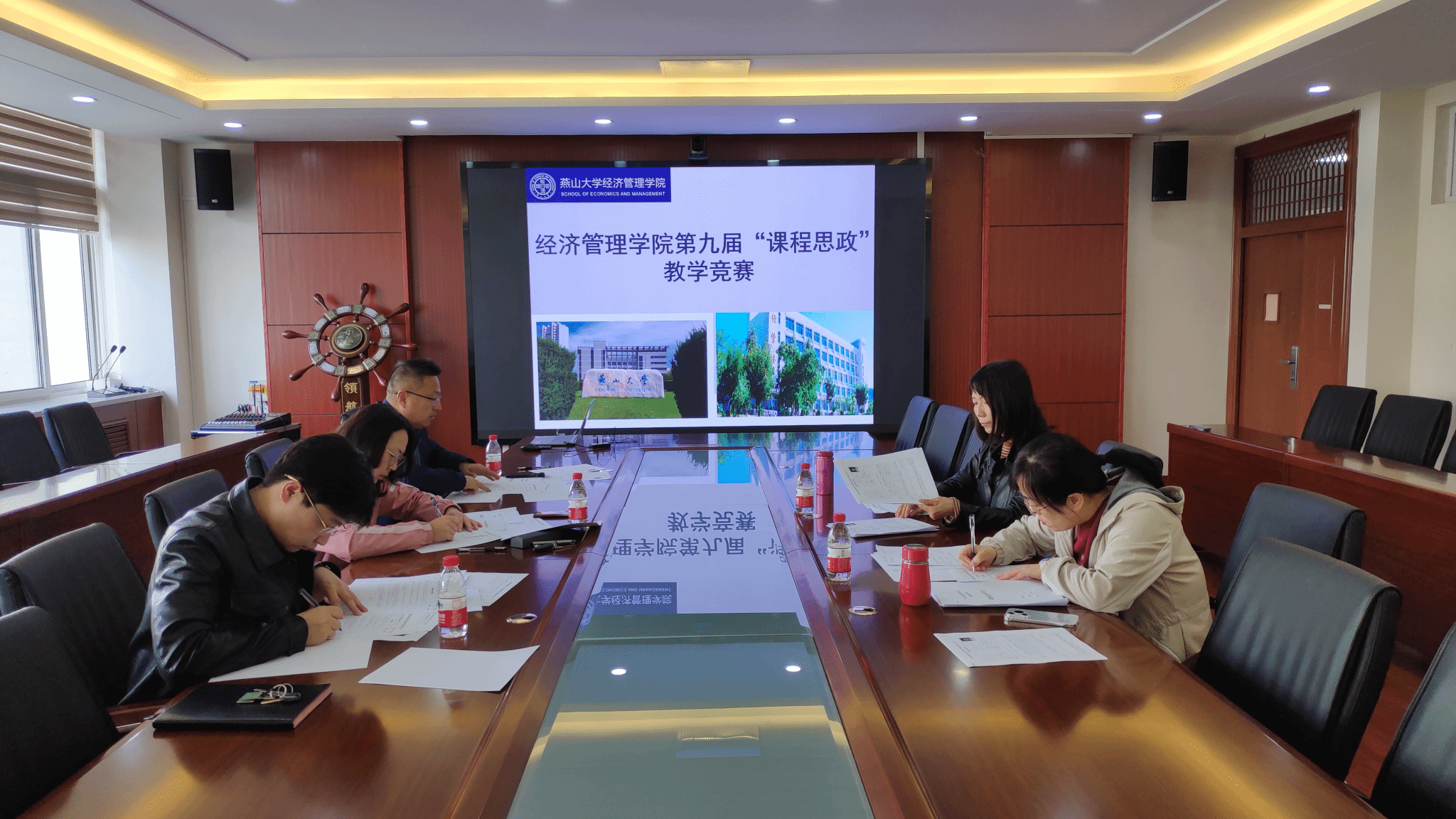 课程思政建设工作深入开展,提升教师思政教学能力,学院于4月23日下午在经管楼A215会议室举办了第九届“课程思政”教学竞赛,本次竞赛特邀5位具有丰富教学及评审经验的学院专家担任评委,教学督导王宏艳老师为组长,学院多位青年教师观摩了本次竞赛。