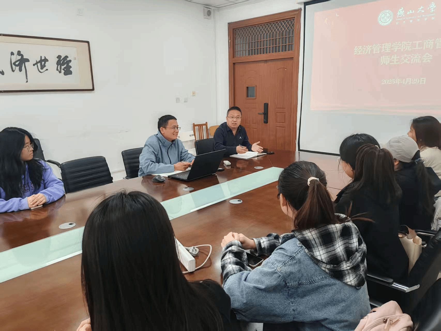 座谈会与10余名学生代表面对面交流,深入了解教学运行情况,广泛听取学生对工商管理系教育教学的意见和建议;围绕2025版培养计划修订、双创和劳动教育实践、就业考研指导、学生党员活动等议题,展开深入交流。