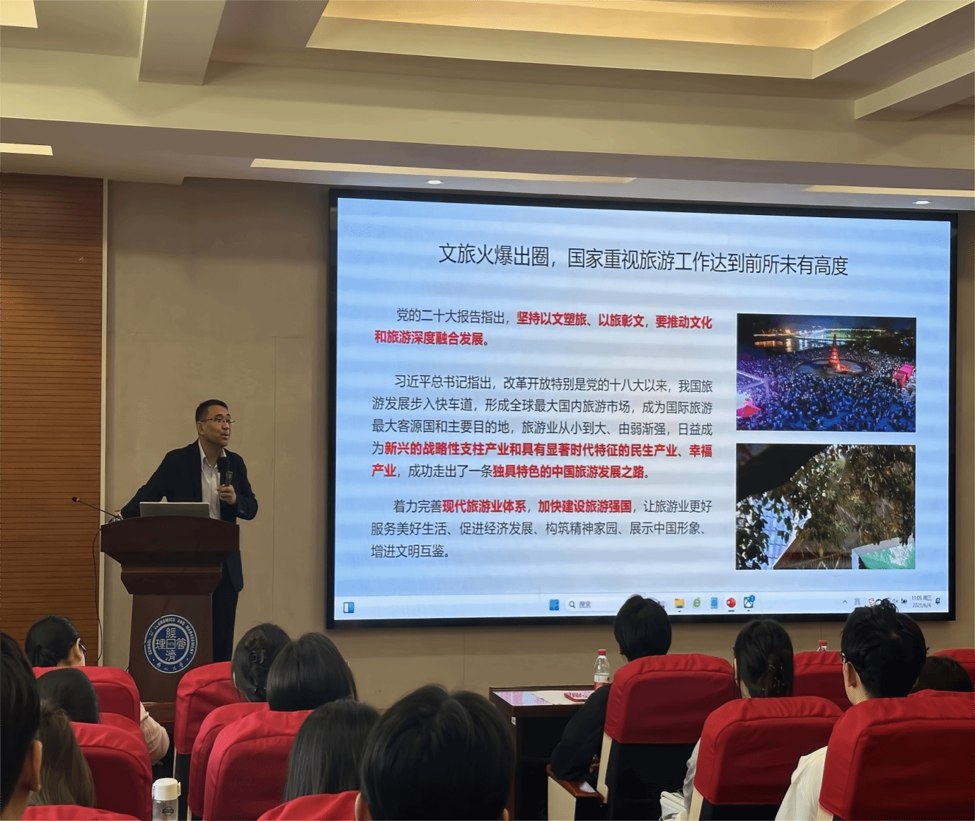 副处级辅导员张薇,旅游管理专业150余名师生代表参加了讲座。讲座由旅游管理系副主任高磊主持。