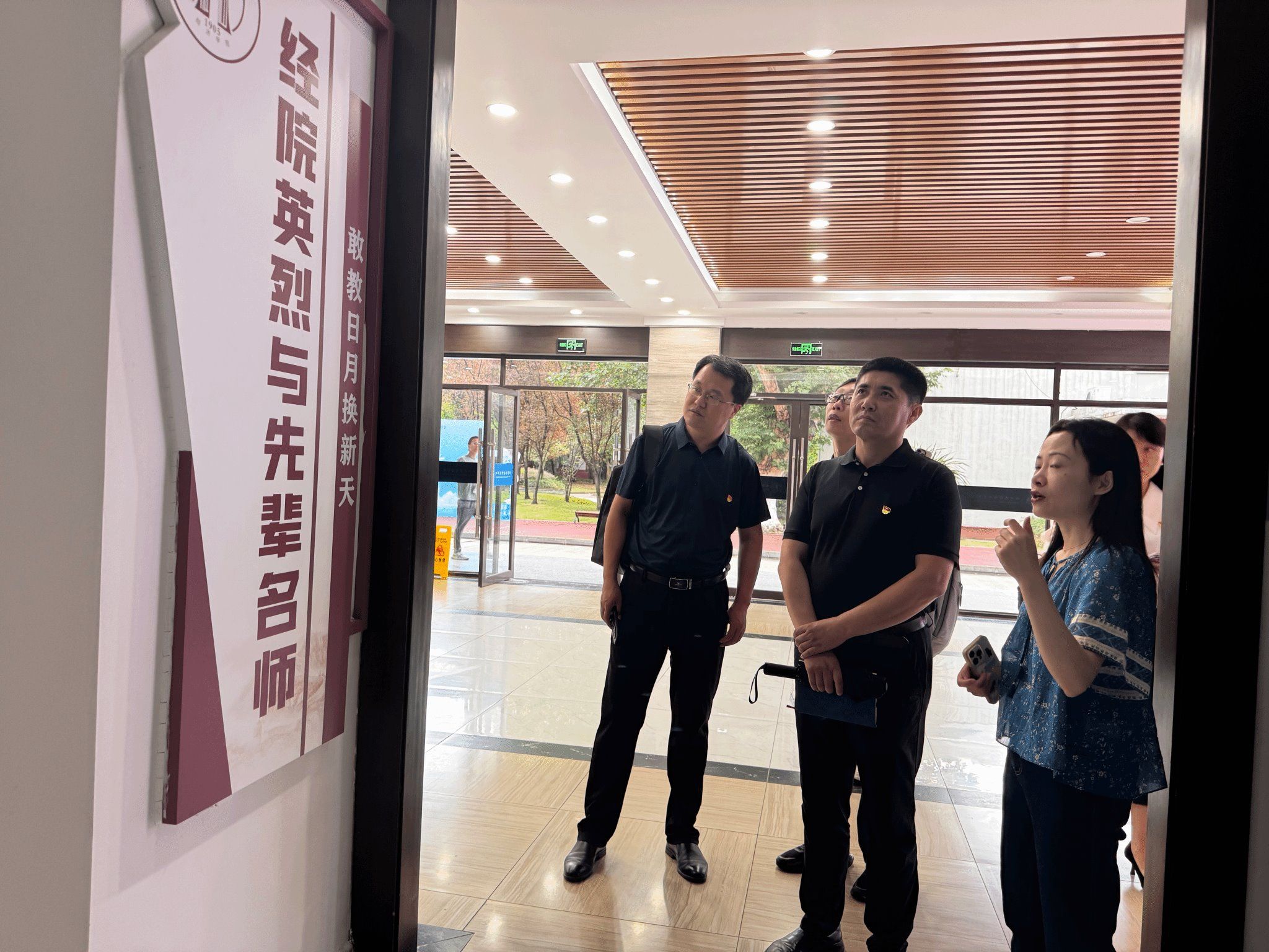 调研团队围绕学院的党建与业务深度融合模式和制度设计等内容进行了深入交流。调研团队还参观了经济学院“百年经院”院史长廊和英烈与先辈名师红色长廊。