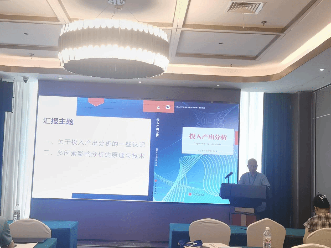教师刘新建教授参加会议并做了杰出学者报告,报告的题目是《投入产出分析与多因素影响分析》,主持了分组会议。在报告中,刘新建深入讨论了投入产出分析的学科地位,对经济学科的学科体系设置提出了建议,另外报告了多因素影响分析的理论与方法研究成果。
